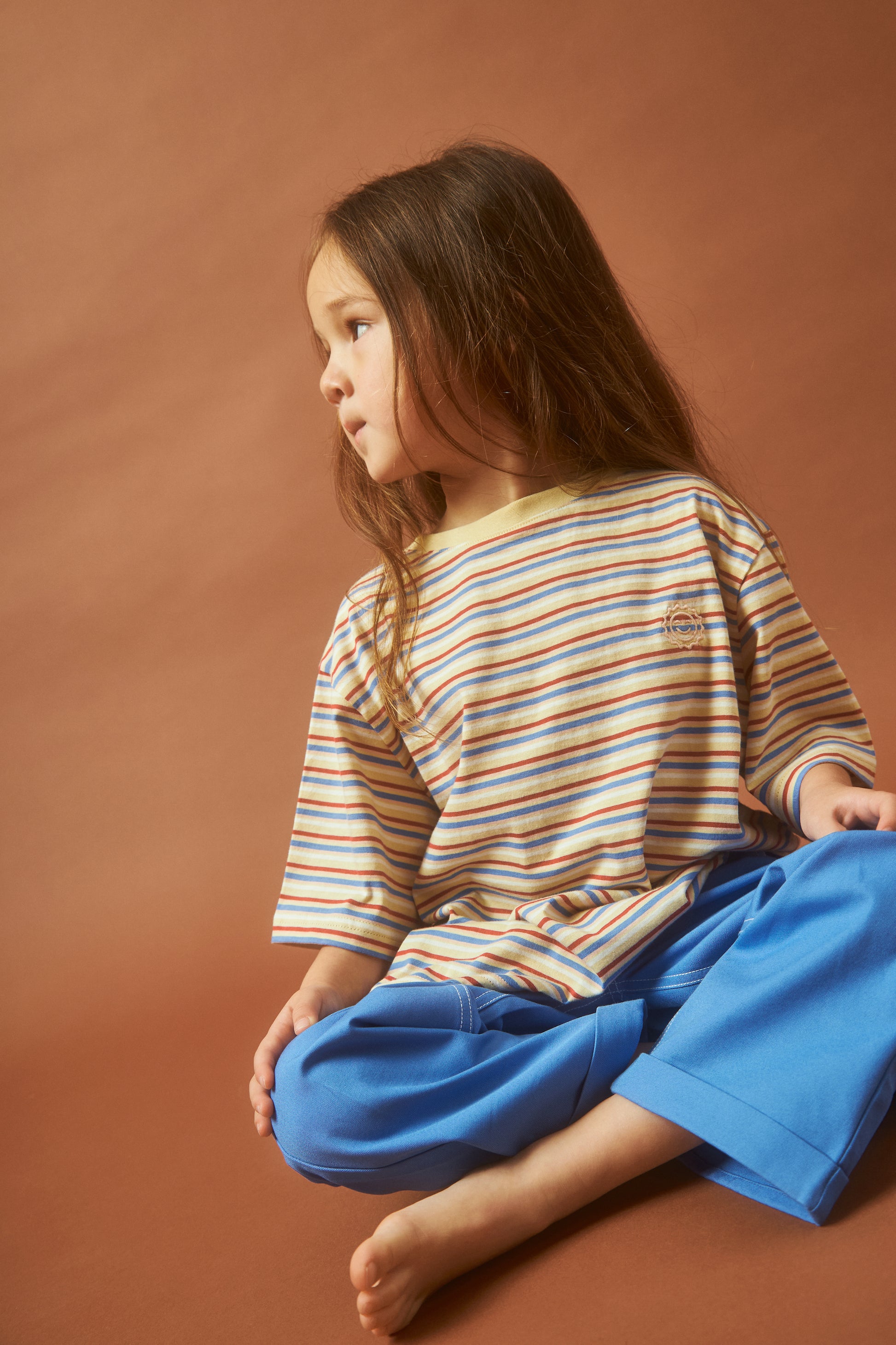 Model #1 is age 5.5 and wearing size 6-7 for an oversized fit.