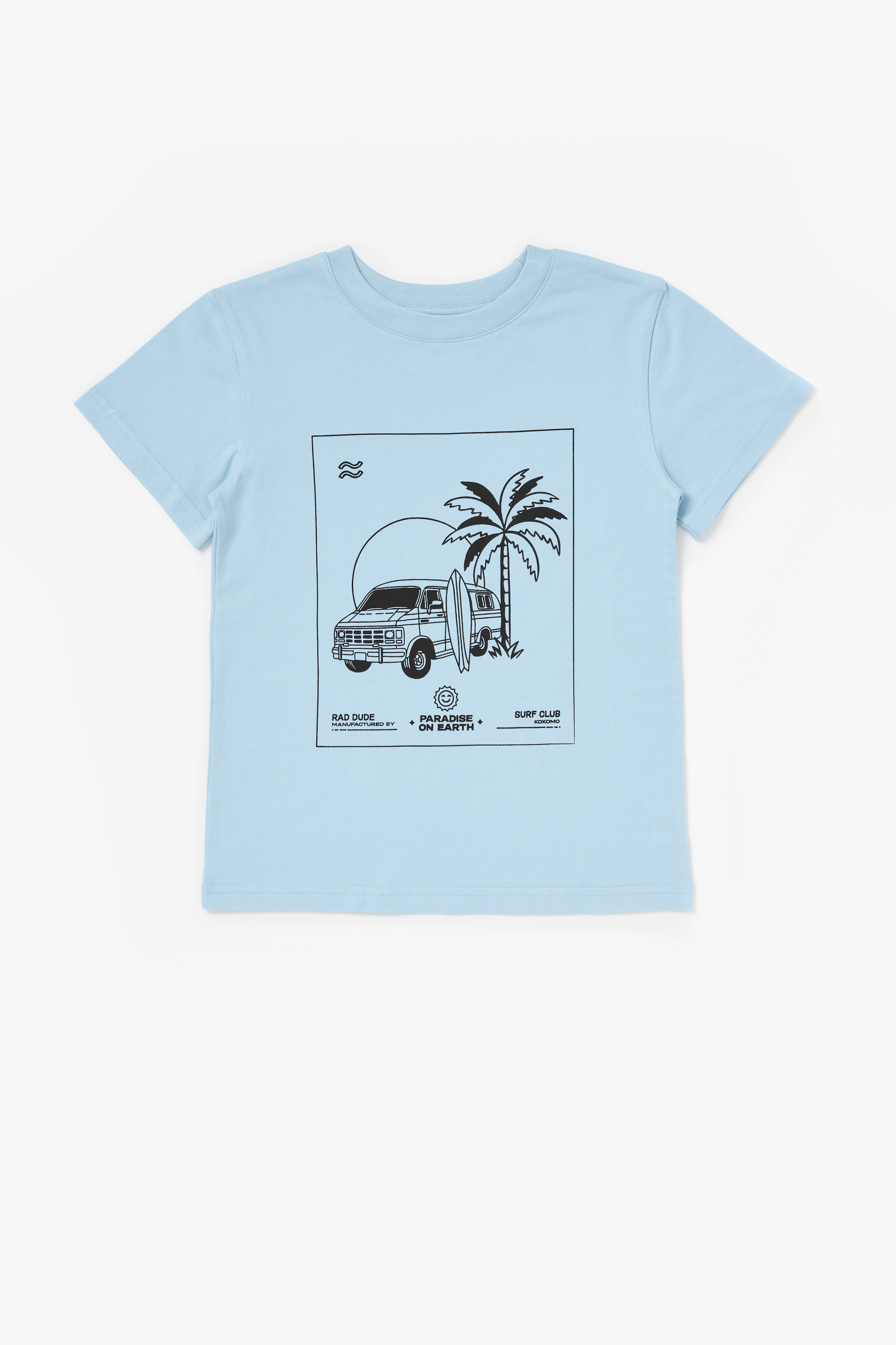 The signature tee by Kokomo is a daily dressing essential, crafted with a limited edition coastal inspired illustration printed on a blue hue base. Featuring a rib trim on the neckline, this short-sleeve, crew neck tee is a relaxed fit.