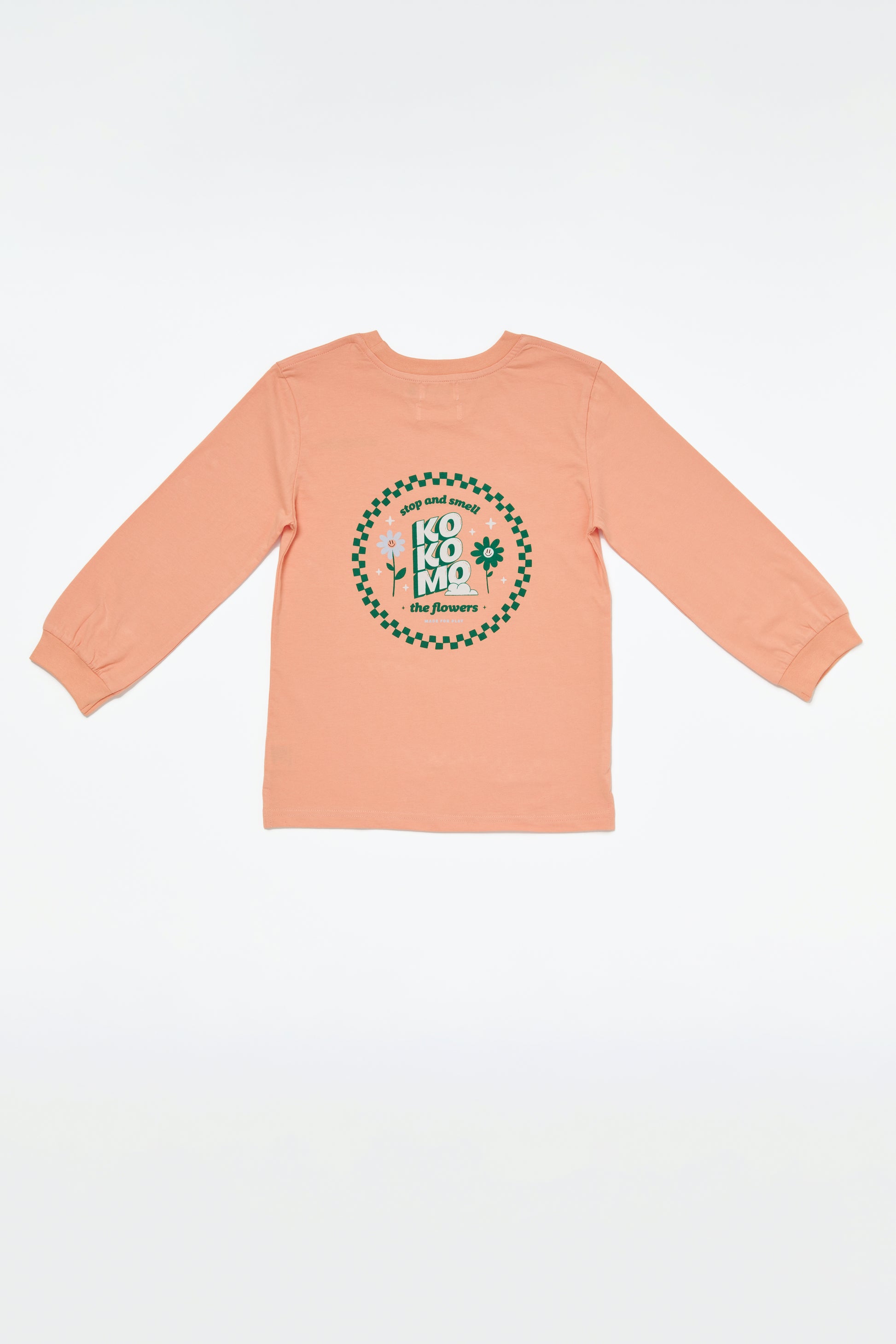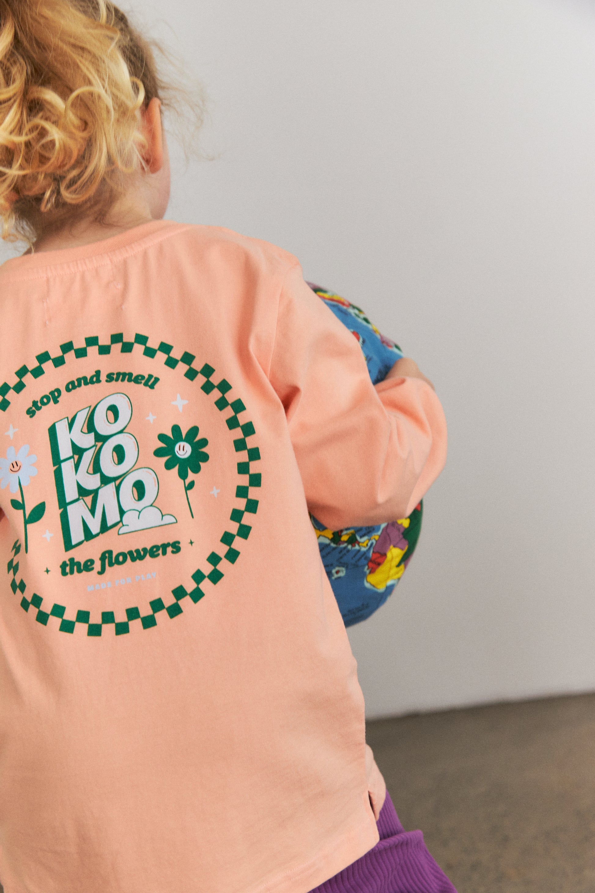 The signature longsleeve tee by Kokomo, complete with a limited edition floral illustration in contrasting summer hues, printed on a peach base. Featuring a rib trim on the neckline and sleeve cuff, this crew neck tee is a relaxed fit.