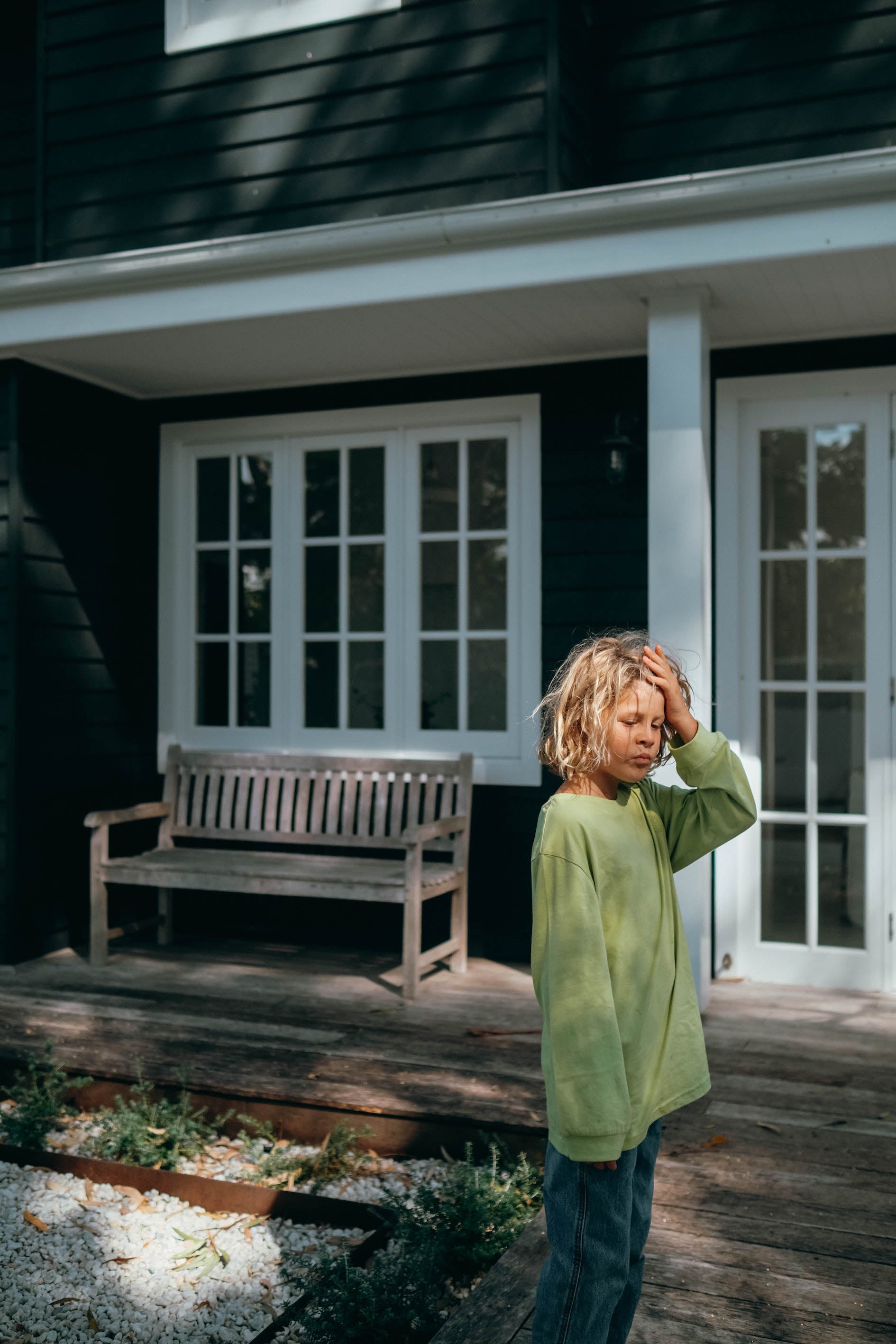 Fits true to size for a relaxed fit. Model is age 4.5 and wears size 4-5.