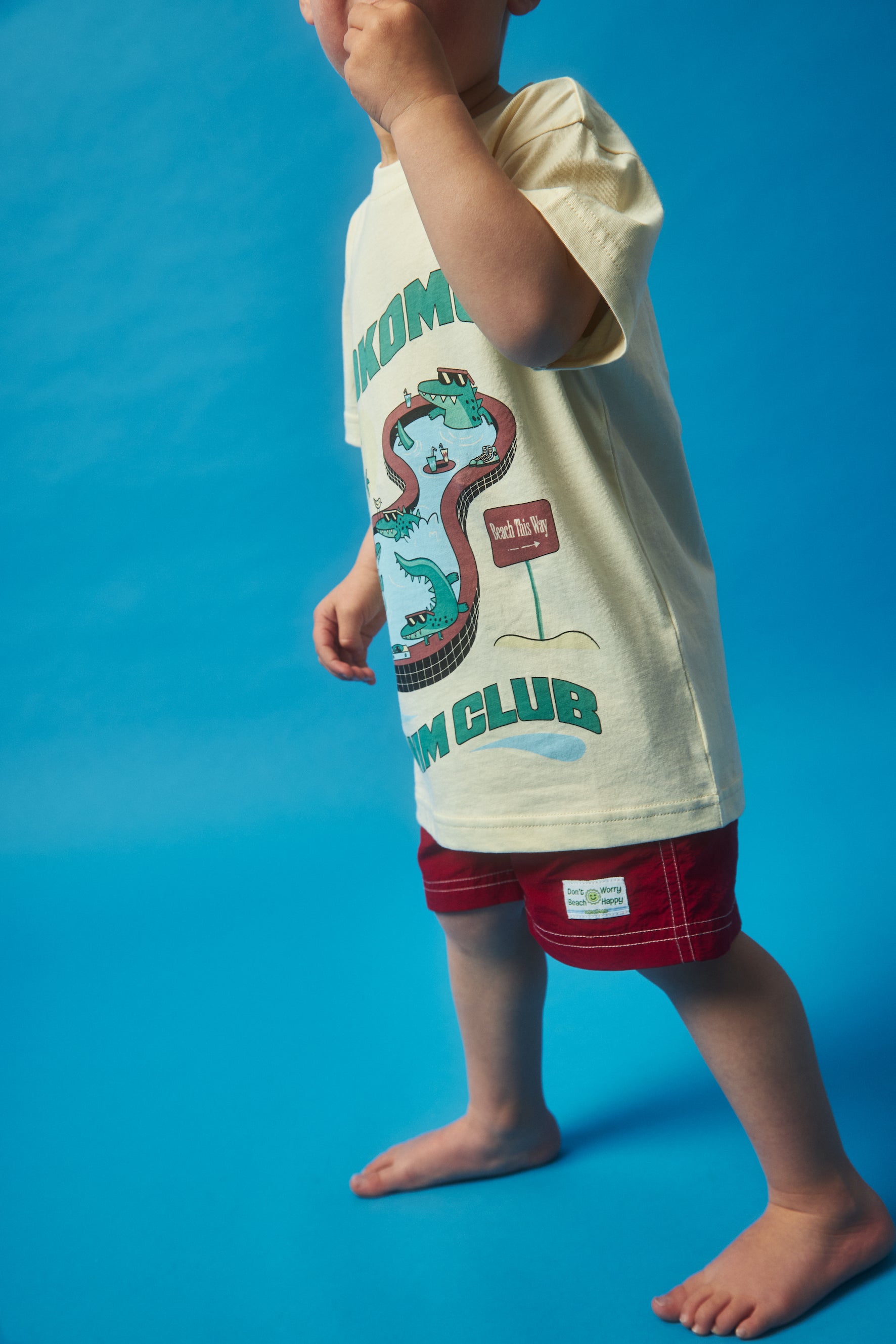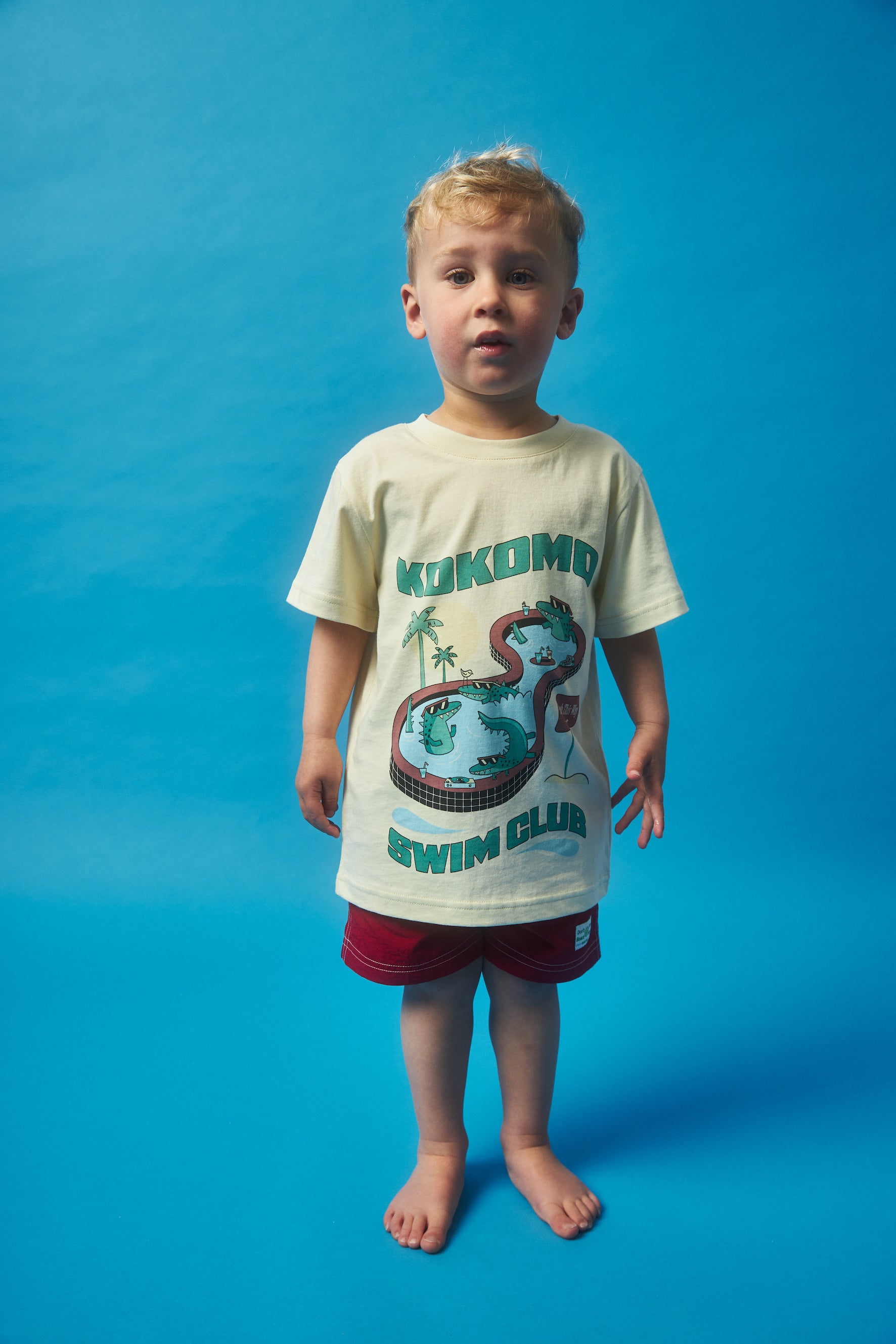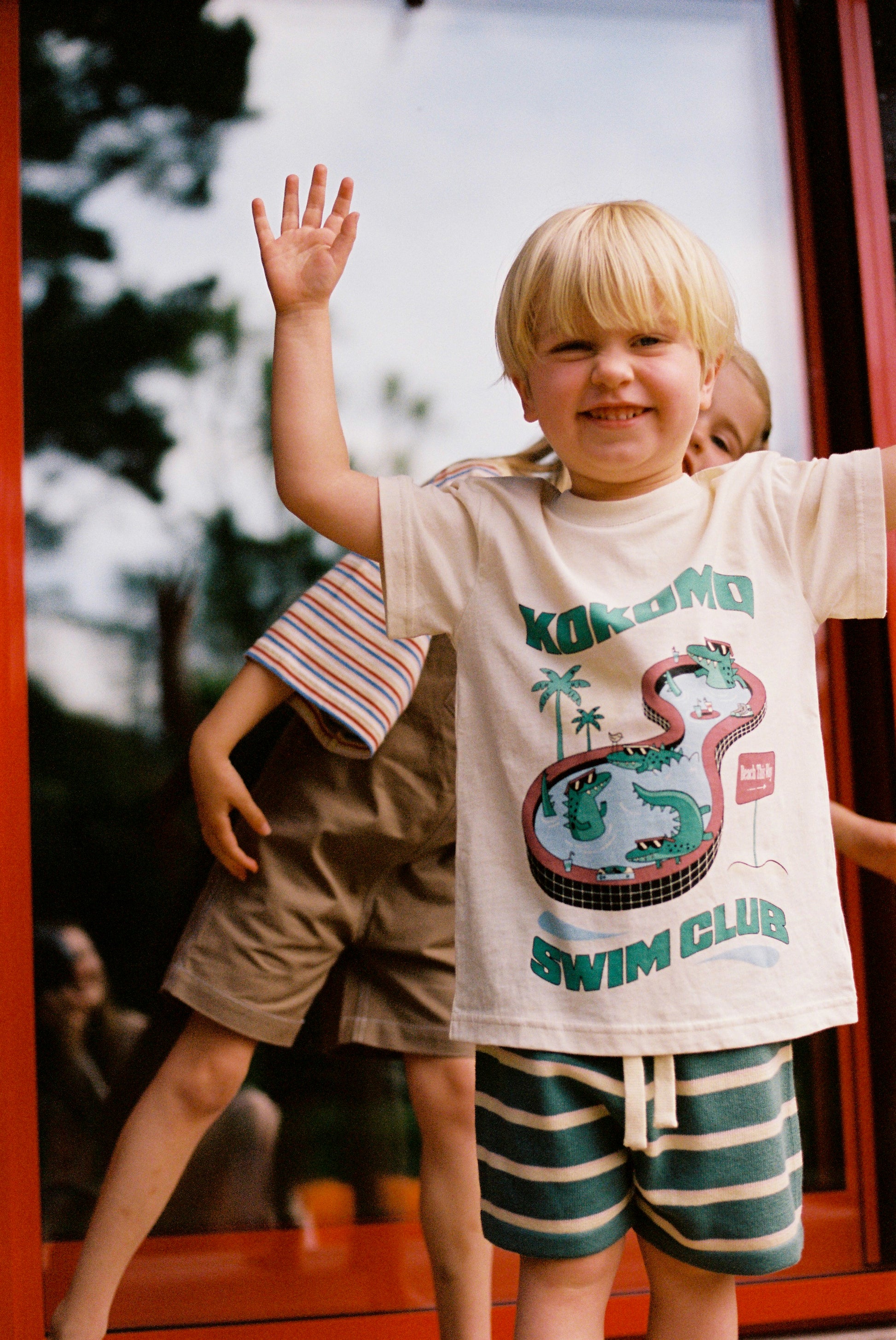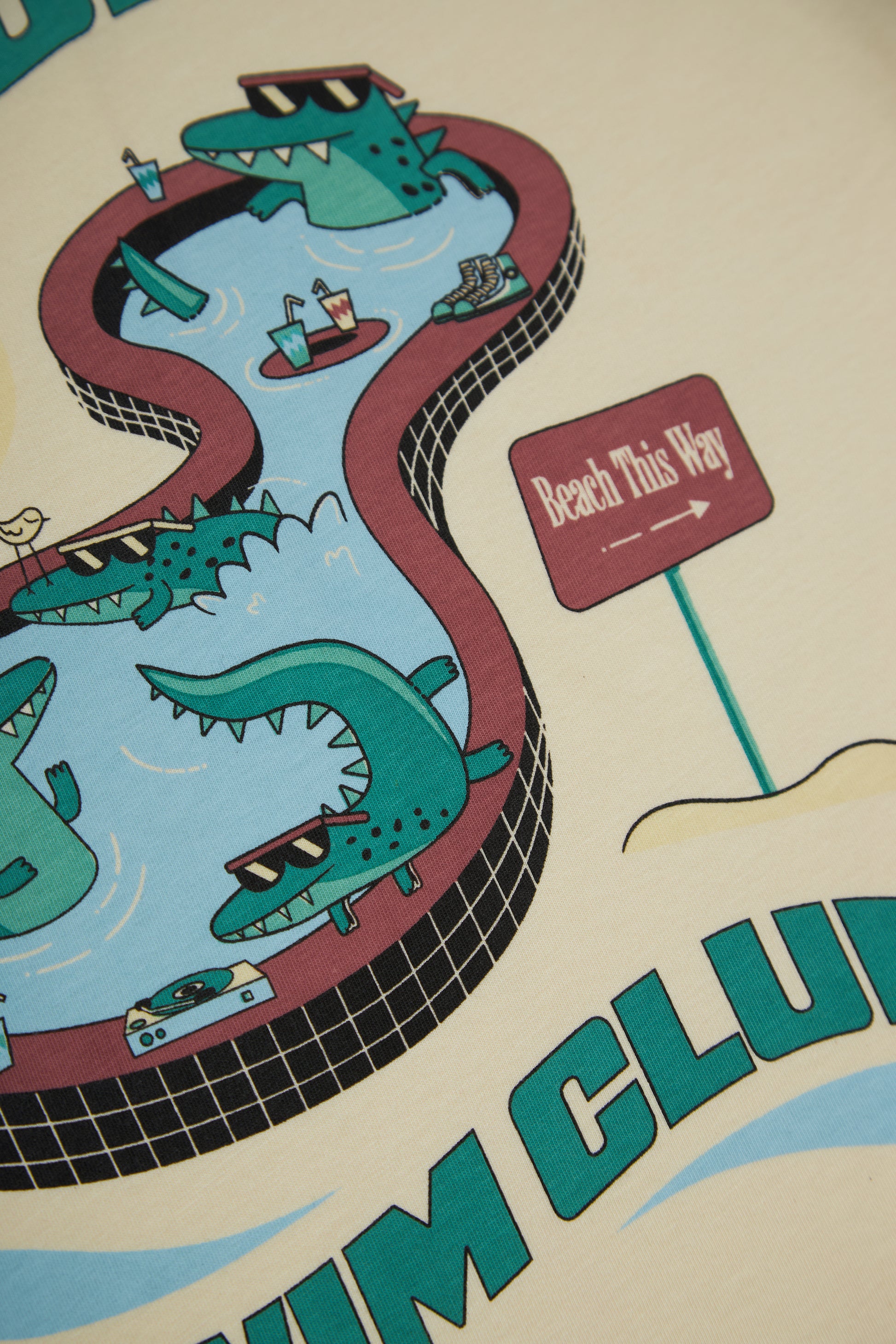 The signature tee by Kokomo is a summer essential, crafted in a limited edition Swim Club print. Featuring a rib trim on the neckline, this short-sleeve, crew neck tee is a relaxed fit. Inspired by a retro colour palette, and complete with cheeky alligators enjoying a dip in the pool.