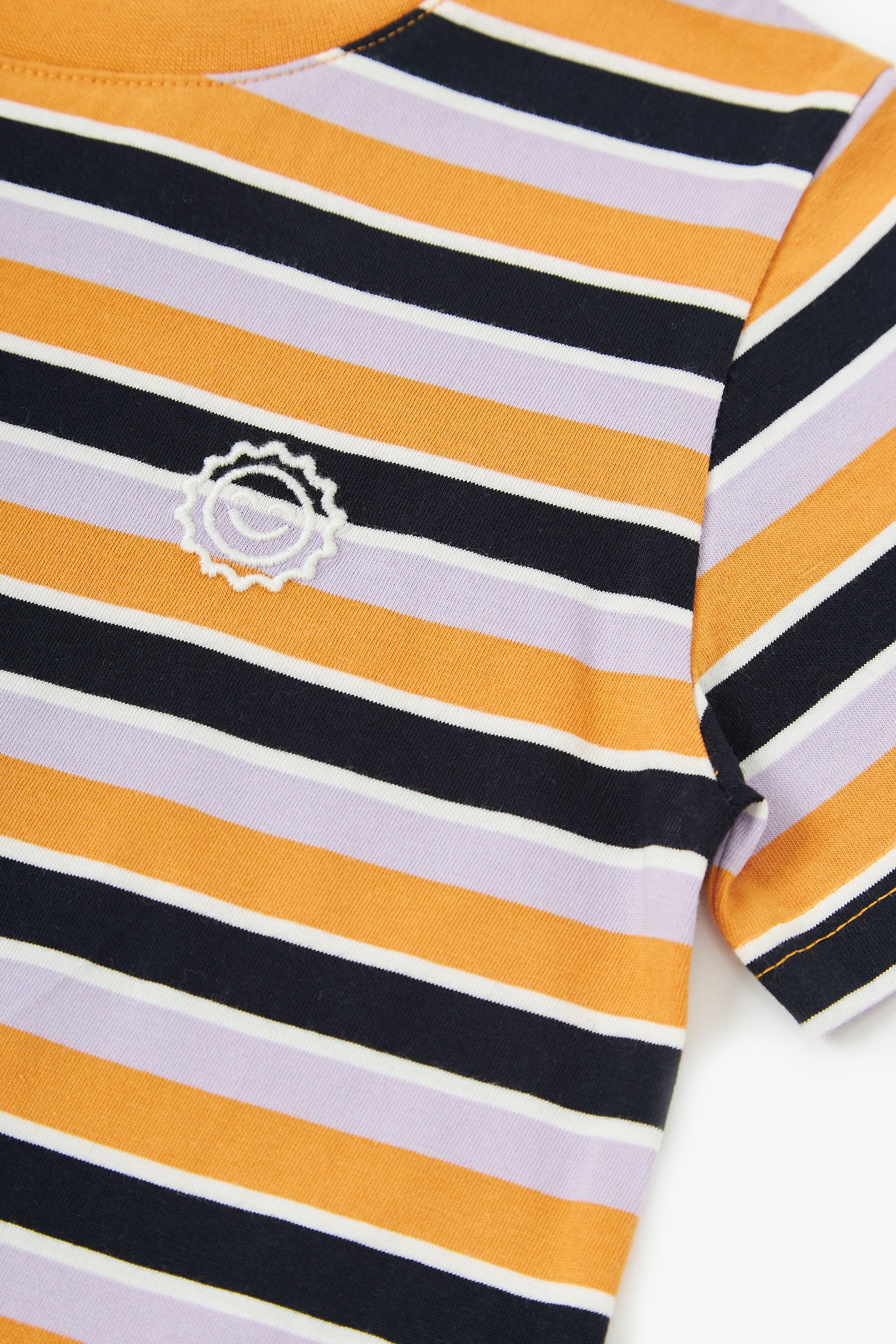 The signature stripe tee by Kokomo is a daily dressing essential, exploring an unpredictable colour palette inspired by the evening hues of Venice Beach. Featuring a rib trim on the neckline, this short-sleeve, crew neck tee is a relaxed fit.